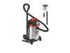 Aspiratore con presa 230V per il collegamento di elettroutensili. Potenza massima presa 1000W. Con 2 ruote piroettanti e 2 fisse. Attacco accessori diametro 32mm. Alloggiamento accessori su corpo macchina. Funzione di soffiaggio.