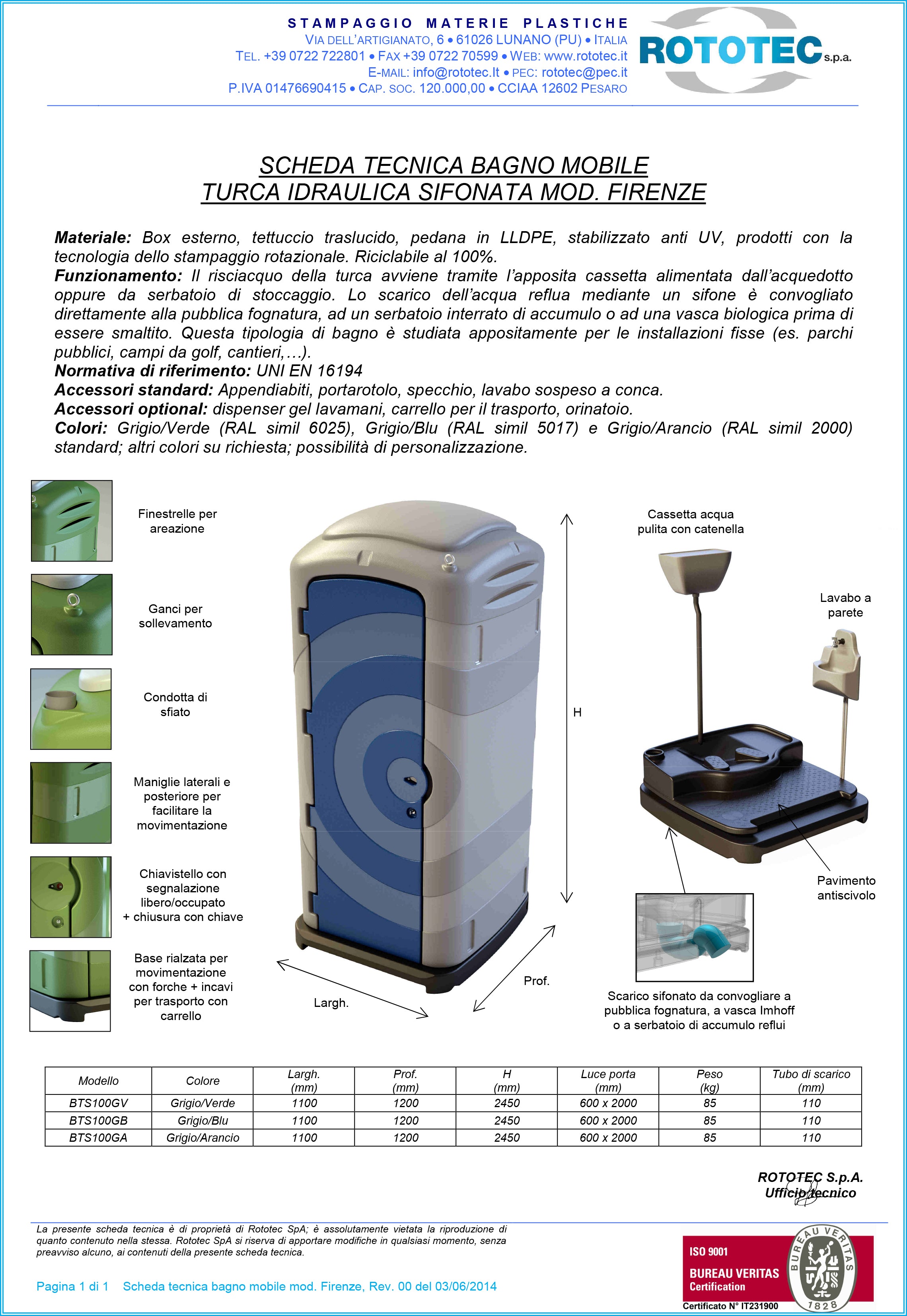 BAGNO CHIMICO FIRENZE con turca idraulica sifonata colore grigio con porta blu ROTOTEC