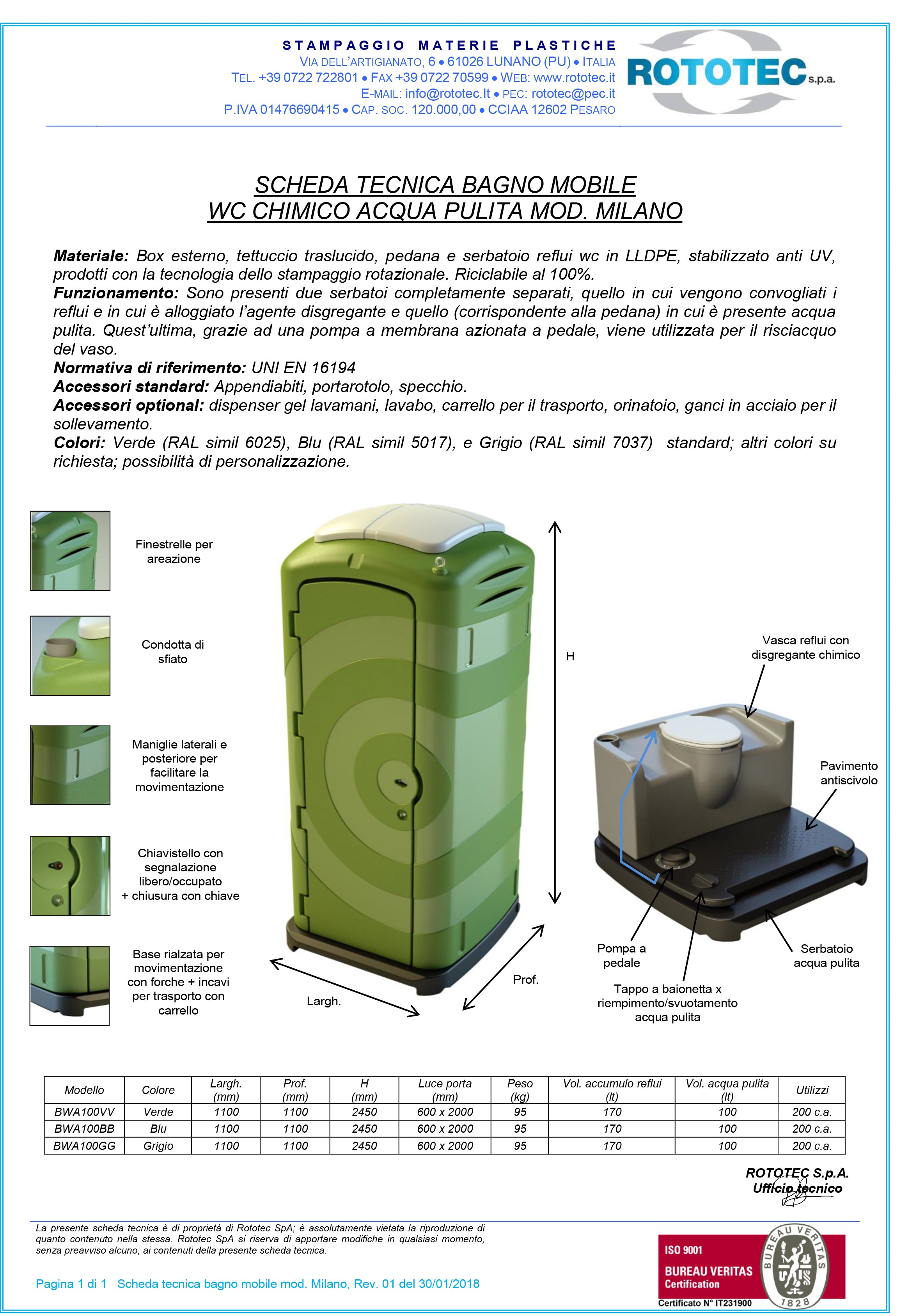 BAGNO CHIMICO MILANO con wc, lavabo e serbatoio acqua colore blu ROTOTEC