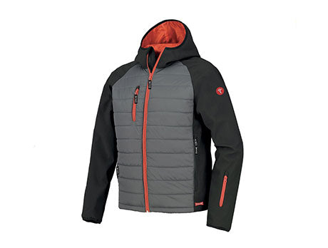 La giacca invernale è in tessuto tipo “Scudo” poliestere pongee spalmato AC in combinazione con Softshell
