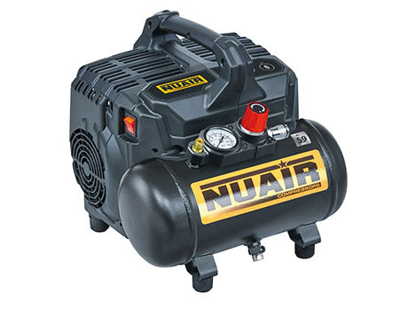 Siltek+ è il nuovo compressore NUAIR con serbatoio da 6 litri, senza olio, piccolo, maneggevole e silenziosissimo: solo 59 dB(A) in meno di 40 cm!