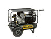 Gruppo pompante coassiale bicilindrico a V a 1450 giri/min ad elevato rendimento ed alta affidabilità, interamente protetto dalla struttura in acciaio. Comandi protetti contro gli urti accidentali. Il piano di appoggio superiore protegge anche le parti meccaniche. Le ruote semi-gonfiabili permettono la movimentazione su qualsiasi tipo di terreno. Maniglia estensibile per un’agevole movimentazione.