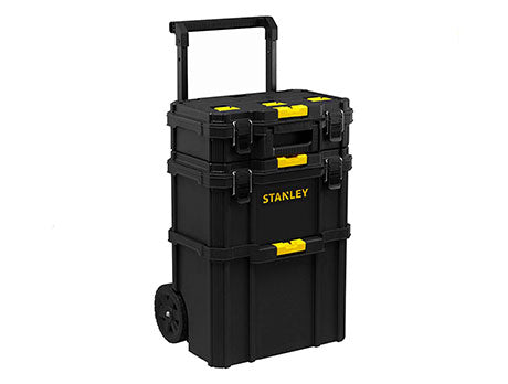 Modular a 3 elementi composto da: cassetta portautensili bassa + cassetta portautensili gran volume con vaschetta estraibile + vasca aperta gran volume. Connessione e disconnessione facilitata dei moduli grazie alle cerniere di aggancio frontali Auto-Lock. Cerniere di chiusura in filo di metallo. Volume 80 litri (carrello completo). Capacità di carico 45 kg (carrello completo). Maniglia telescopica larga 35 cm per un trasporto agevole. Ruote da 7" rivestite in gomma di grande durata.
